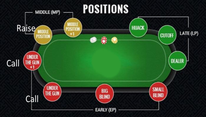 - Nếu 2 vị trí đầu tiên có bài xấu thì raise ở vòng này có thể mang lại chiến thắng.