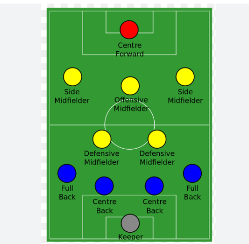- Tiền vệ (5 cầu thủ): 2 tiền vệ phòng ngự: Những cầu thủ này đóng vai trò quan trọng trong việc phòng ngự, giành lại bóng và nhanh chóng chuyển từ phòng ngự sang tấn công. Và 1 tiền vệ tấn công : 1 tiền vệ là “số 10”, có nhiệm vụ kiến tạo, tạo cơ hội và hỗ trợ cho tiền đạo. 1 Tiền vệ cánh : Chịu trách nhiệm tấn công từ hai bên cánh, đưa bóng vào vòng cấm và thực hiện những đường chuyền quyết định.